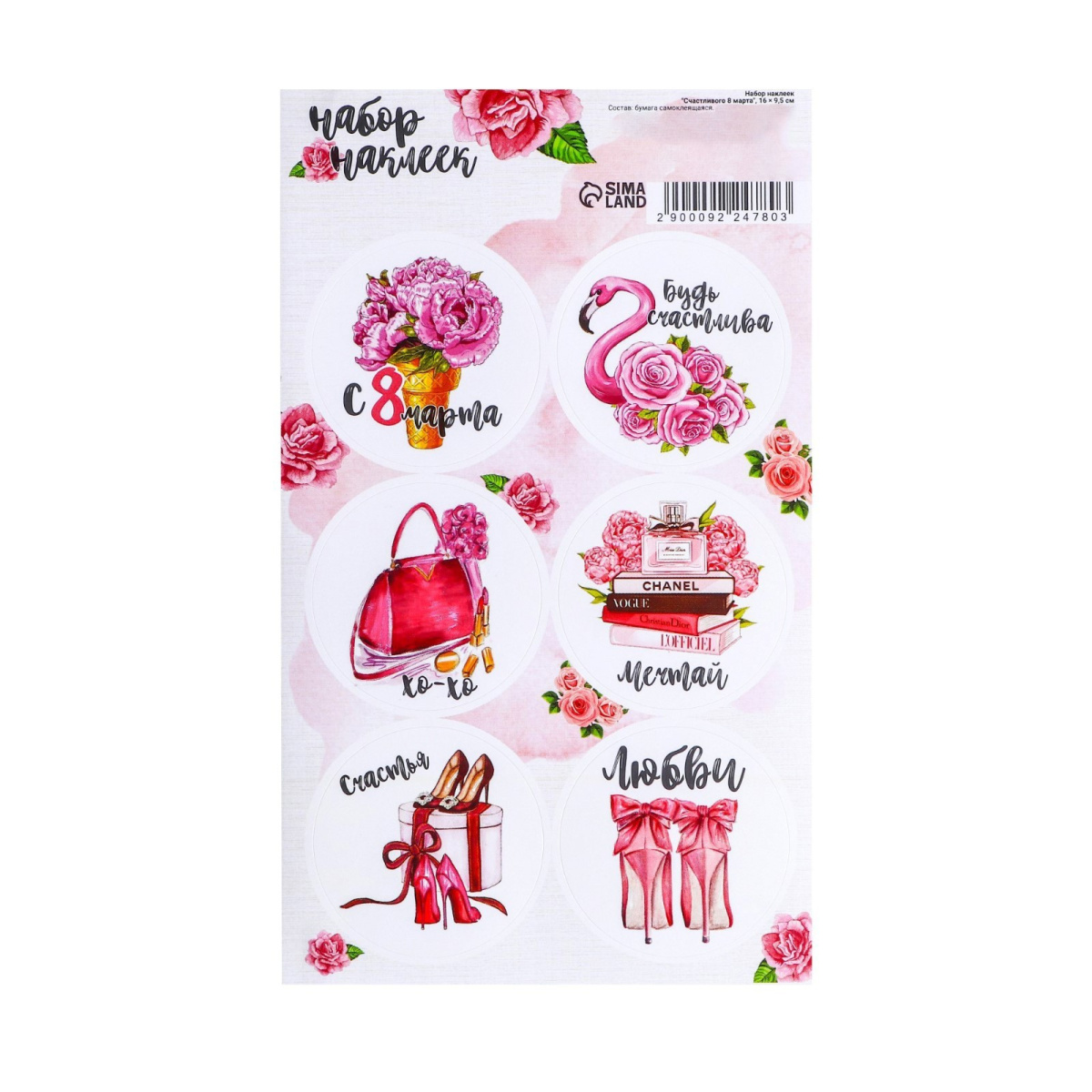 Наклейки СЧАСТЛИВОГО 8 МАРТА 16х9,5см