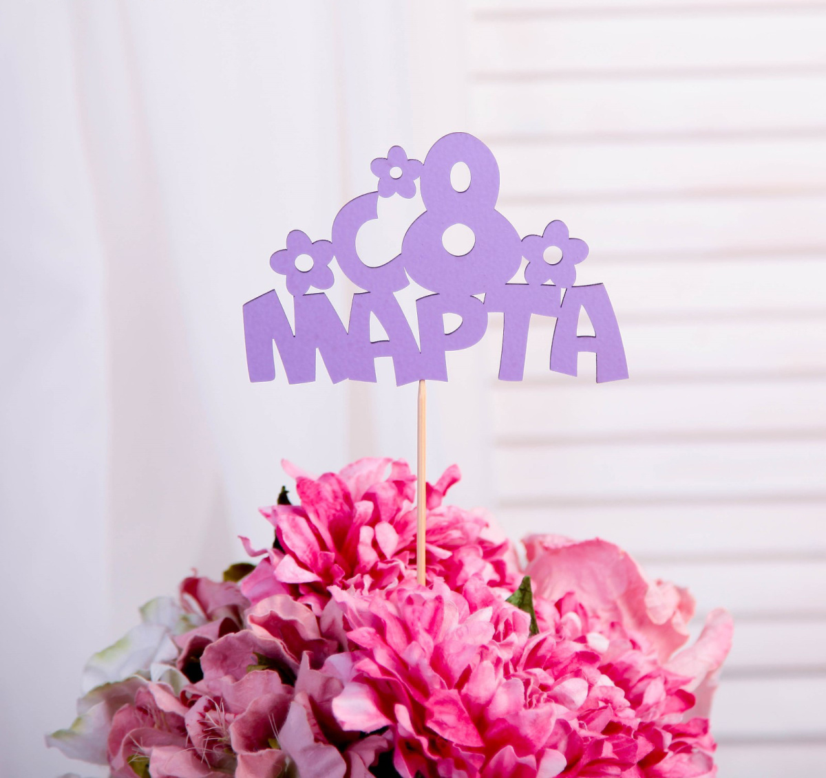 Деревянный топпер для торта на международный женский день - незаменимый элемент декора.