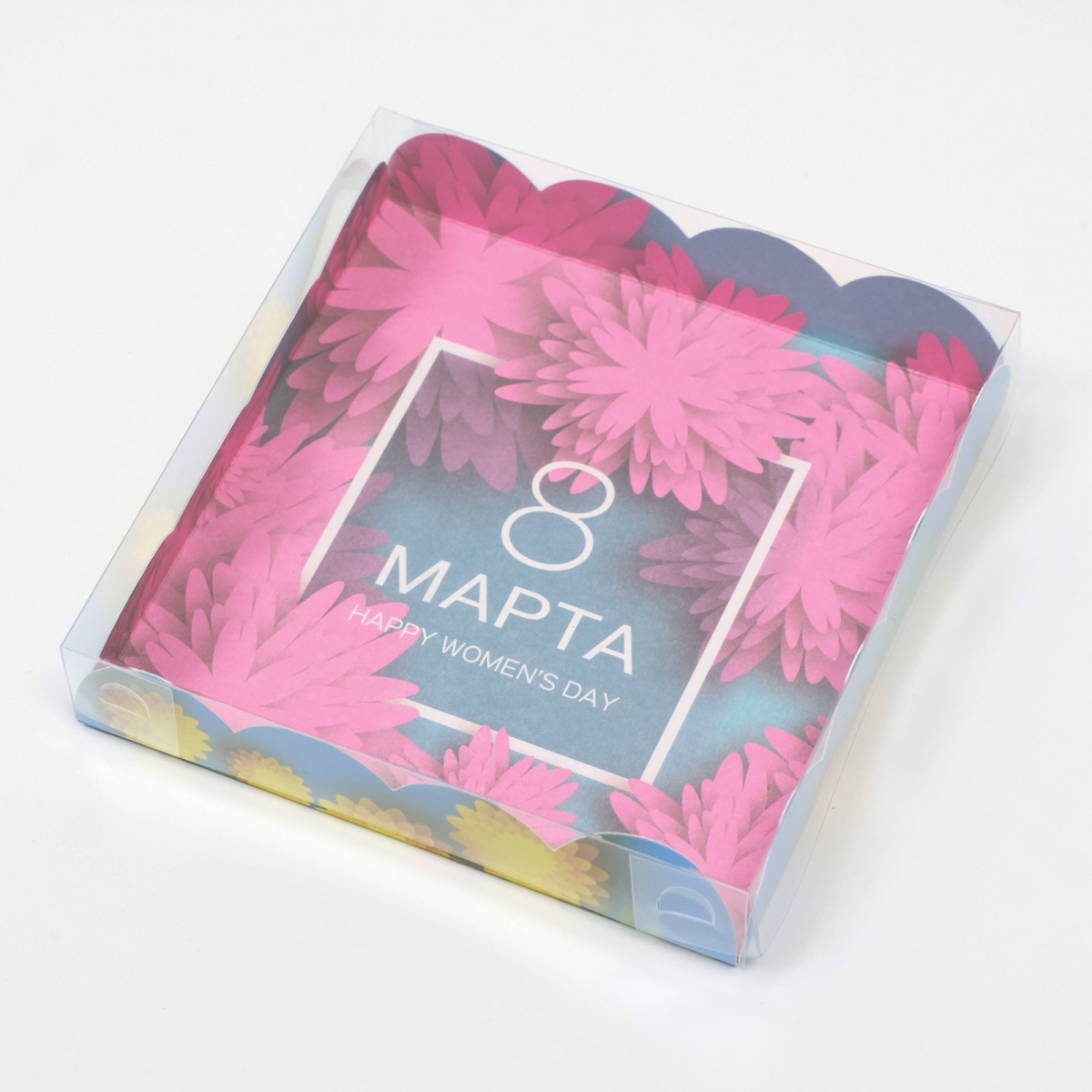Коробка для пряников 8 марта РОЗОВО-ГОЛУБАЯ 15х15х3см