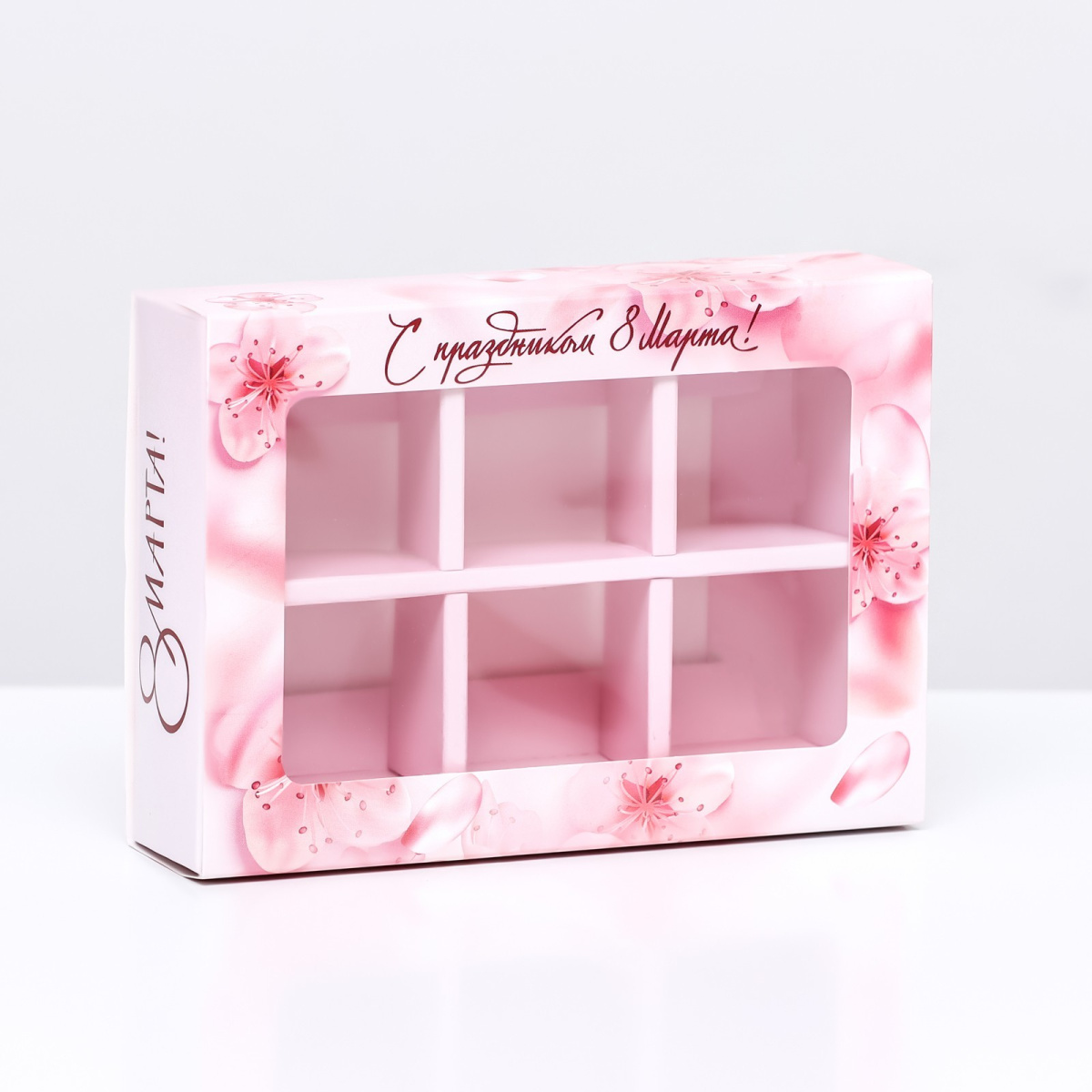 —Коробка на 6 конфет 8 МАРТА розовая 13,7х9,8х3,8см