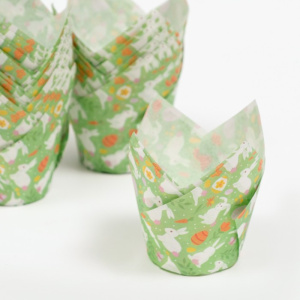 Бумажные капсулы Тюльпан 50х80 мм ЗЕЛЕНЫЕ с кроликами (20 штук)