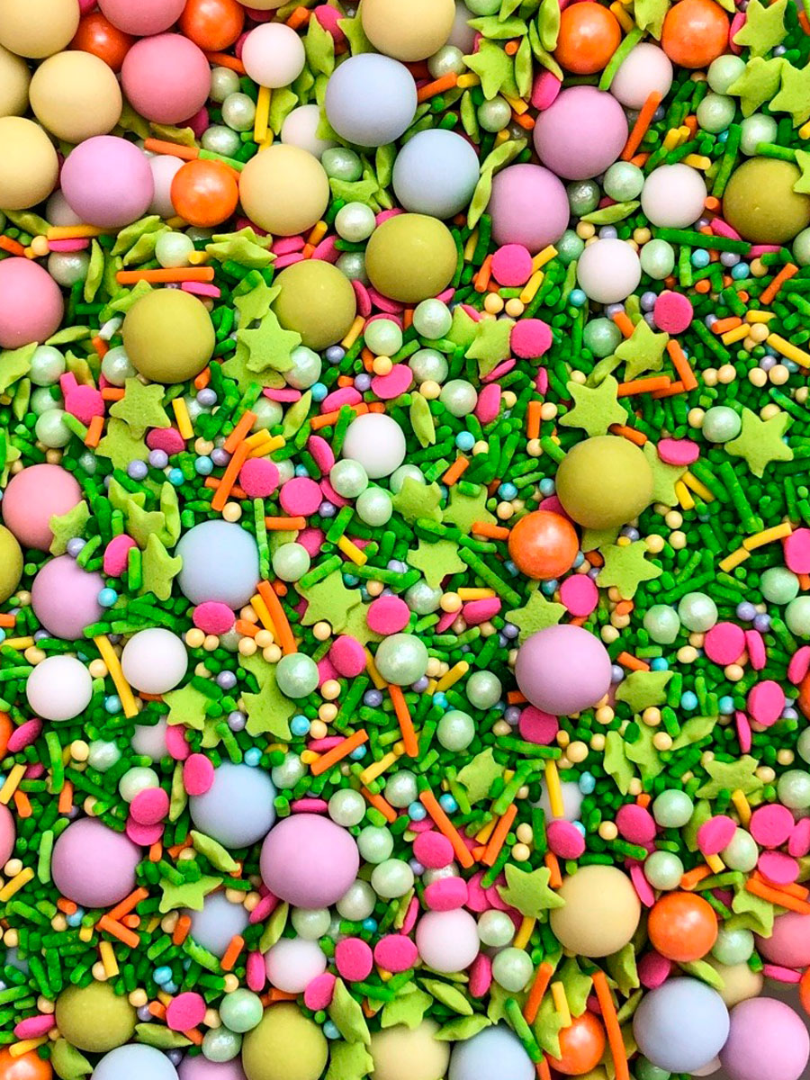 Состав: сахар, крахмал кукурузный, мука пшеничная, мука рисовая, мальтодекстрин, декстроза, E414, E904, ароматизатор ванильный, пищевые красители