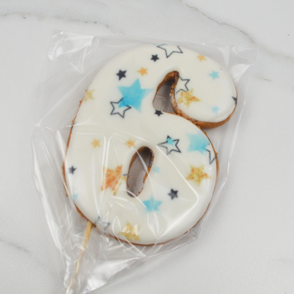 —Пряник ЦИФРА "6" голубая со звездами 9см