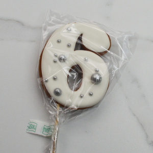 —Пряник ЦИФРА "6" с посыпкой СЕРЕБРО 9см