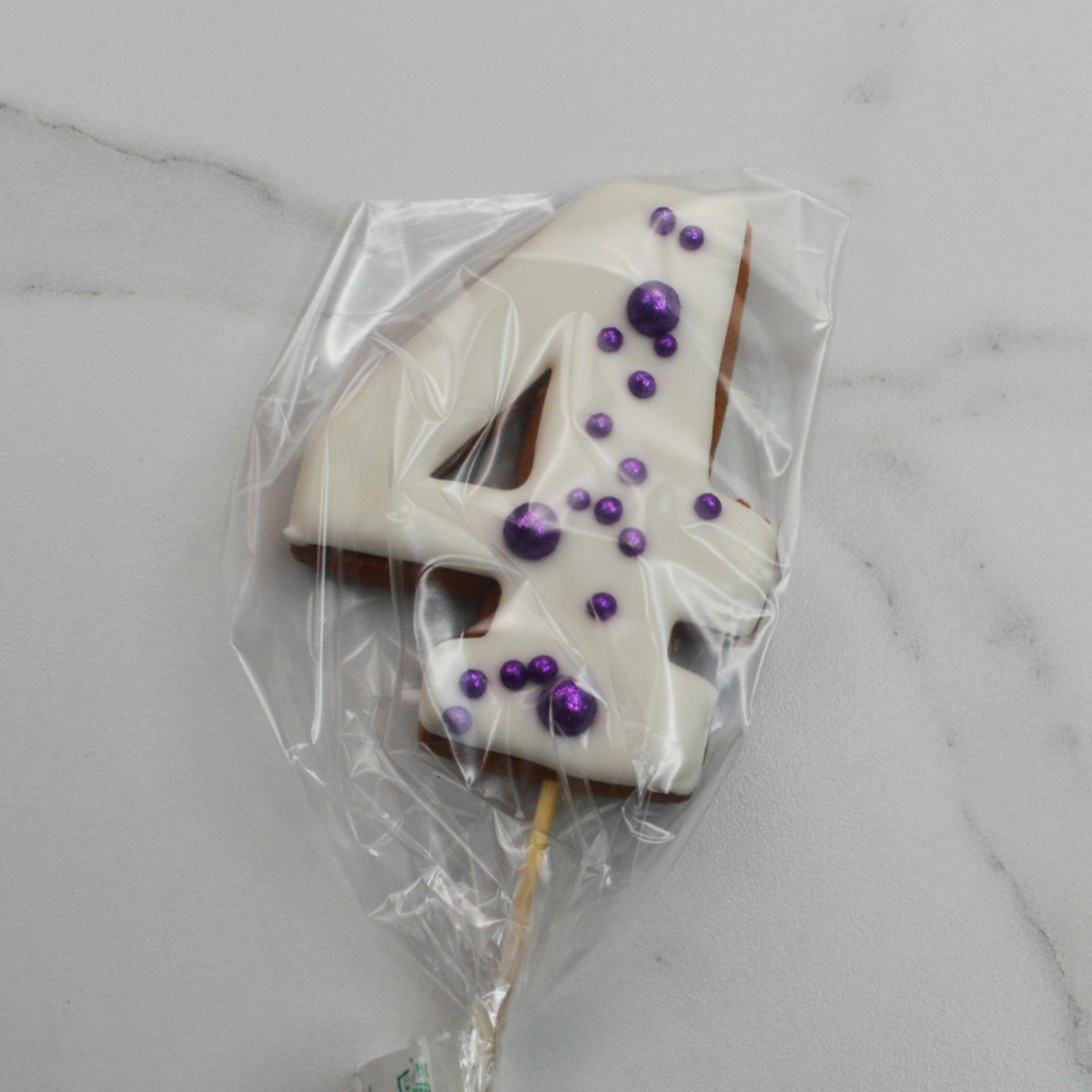 —Пряник ЦИФРА "4" с посыпкой ФИОЛЕТОВЫЙ блеск 9см