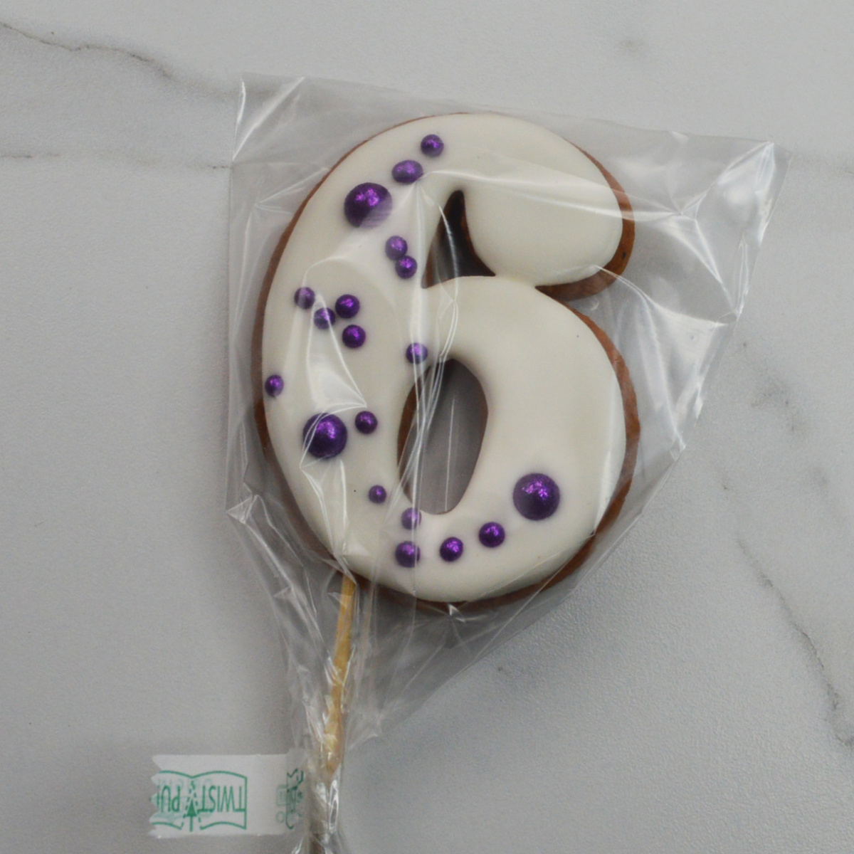 —Пряник ЦИФРА "6" с посыпкой ФИОЛЕТОВЫЙ блеск 9см