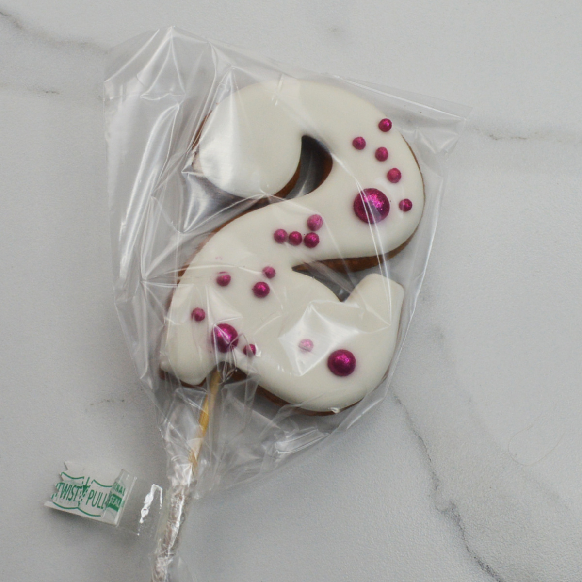 —Пряник ЦИФРА "2" с посыпкой РОЗОВЫЙ блеск 9см