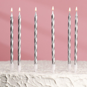 Свечи в торт "Металлик" СЕРЕБРО 14см, 6 штук