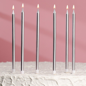 Свечи в торт "Ройс" серебро 13см 6 штук