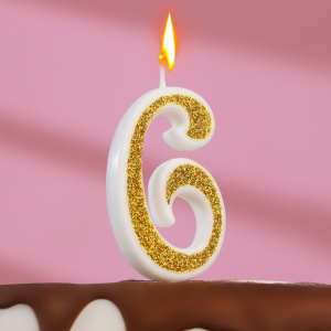 Свеча для торта БЛЁСТКИ золото цифра 6