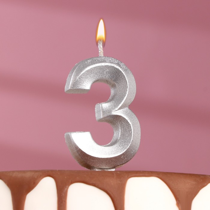 —Свеча восковая "Грань" СЕРЕБРО цифра 3