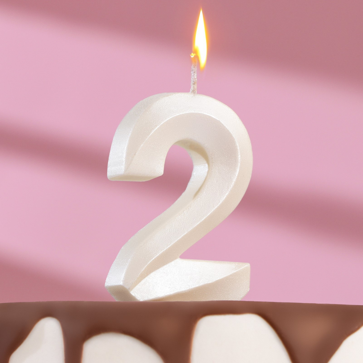 Свеча восковая "Грань" ЖЕМЧУГ цифра 2