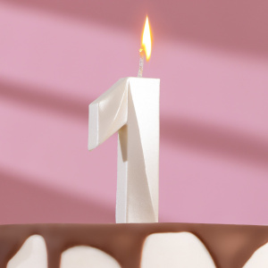 Свеча восковая "Грань" ЖЕМЧУГ цифра 1