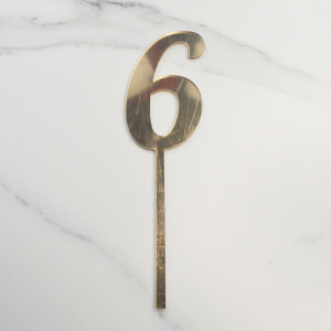 Топпер акриловый зеркальный ЦИФРА 6 золото