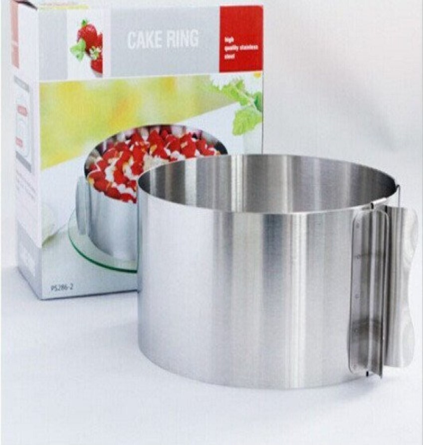 Металлическое раздвижное кольцо удобно для выпечки и сборки торта.