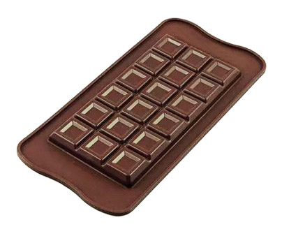 Форму в виде плитки можно использовать для шоколадной глазури, а так же для карамели, мастики, теста и других смесей.