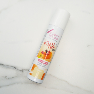 Состав: масло какао, краситель: Е170, Е110, пропеллент: (n-бутан Е943а, пропан Е944, изобутан Е943b).