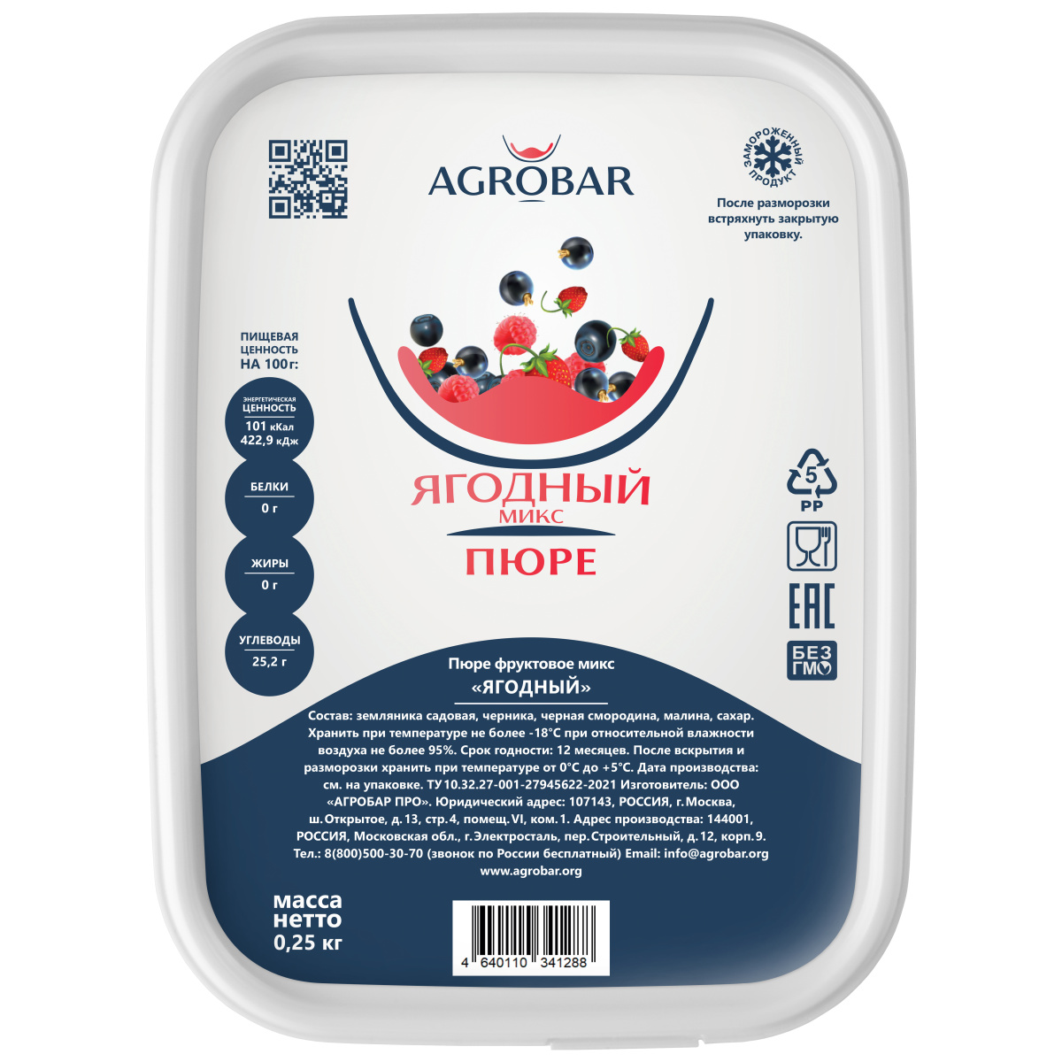 Ягодный микс состоит из пюре земляники, черники, черной смородины и малины.