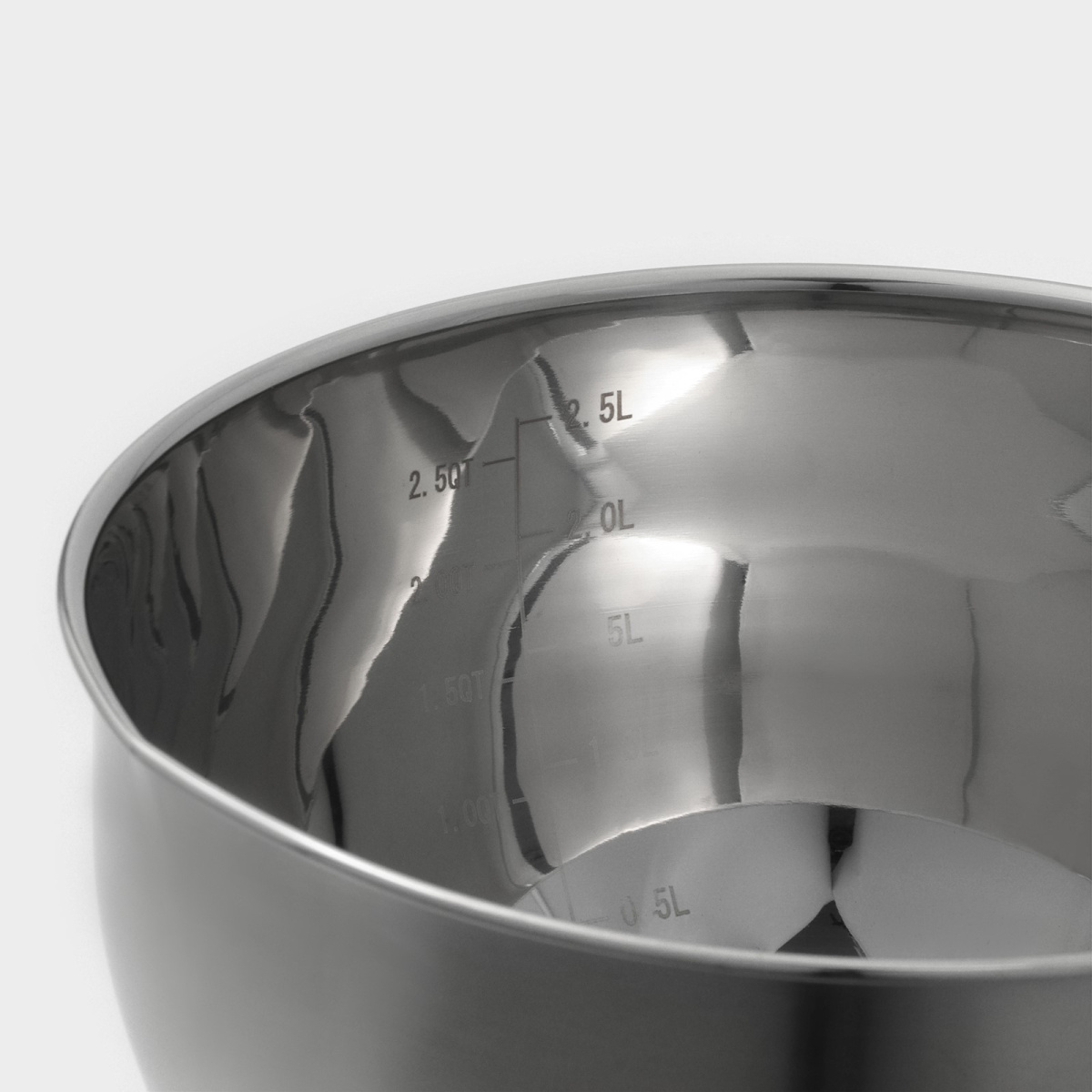 Мерная шкала позволит правильно дозировать продукты, а противоскользящее покрытие придаст ёмкости устойчивость.