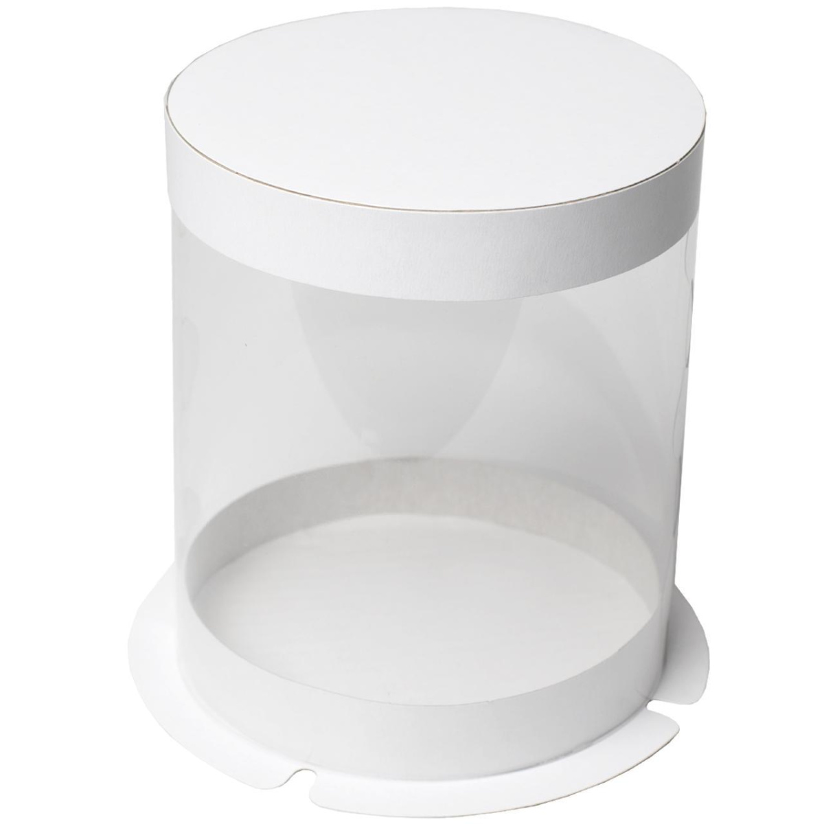 Коробка-тубус с прозрачными стенками, дном и крышкой белого цвета.