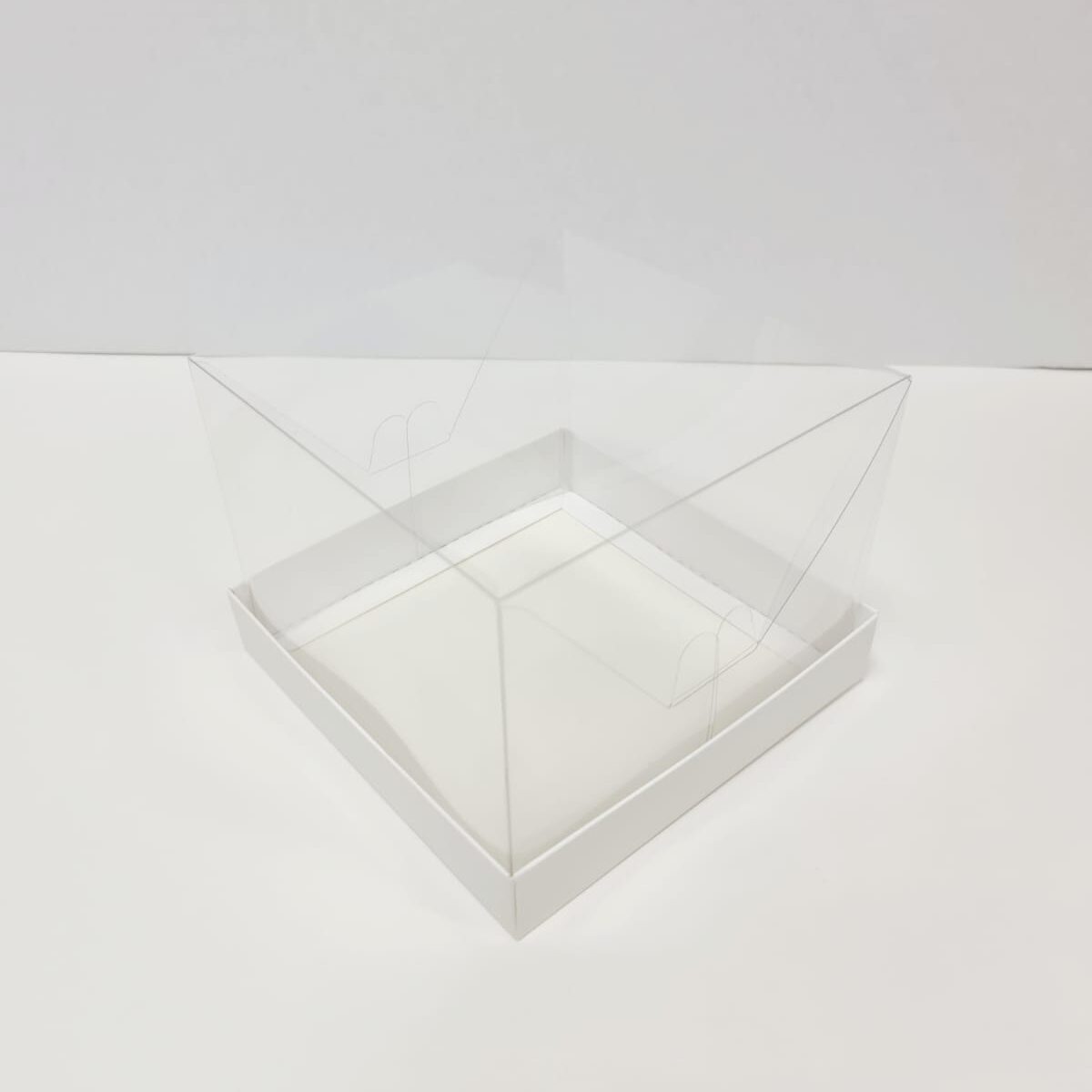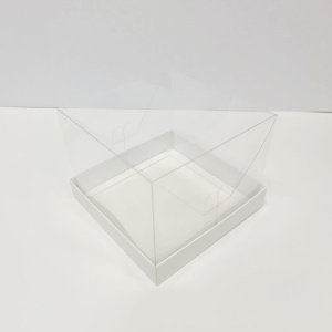 Коробка для торта с картонным дном и пластиковой крышкой.