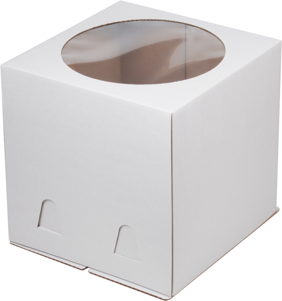 Коробка для торта с окном стандартного вида и классической сборки.