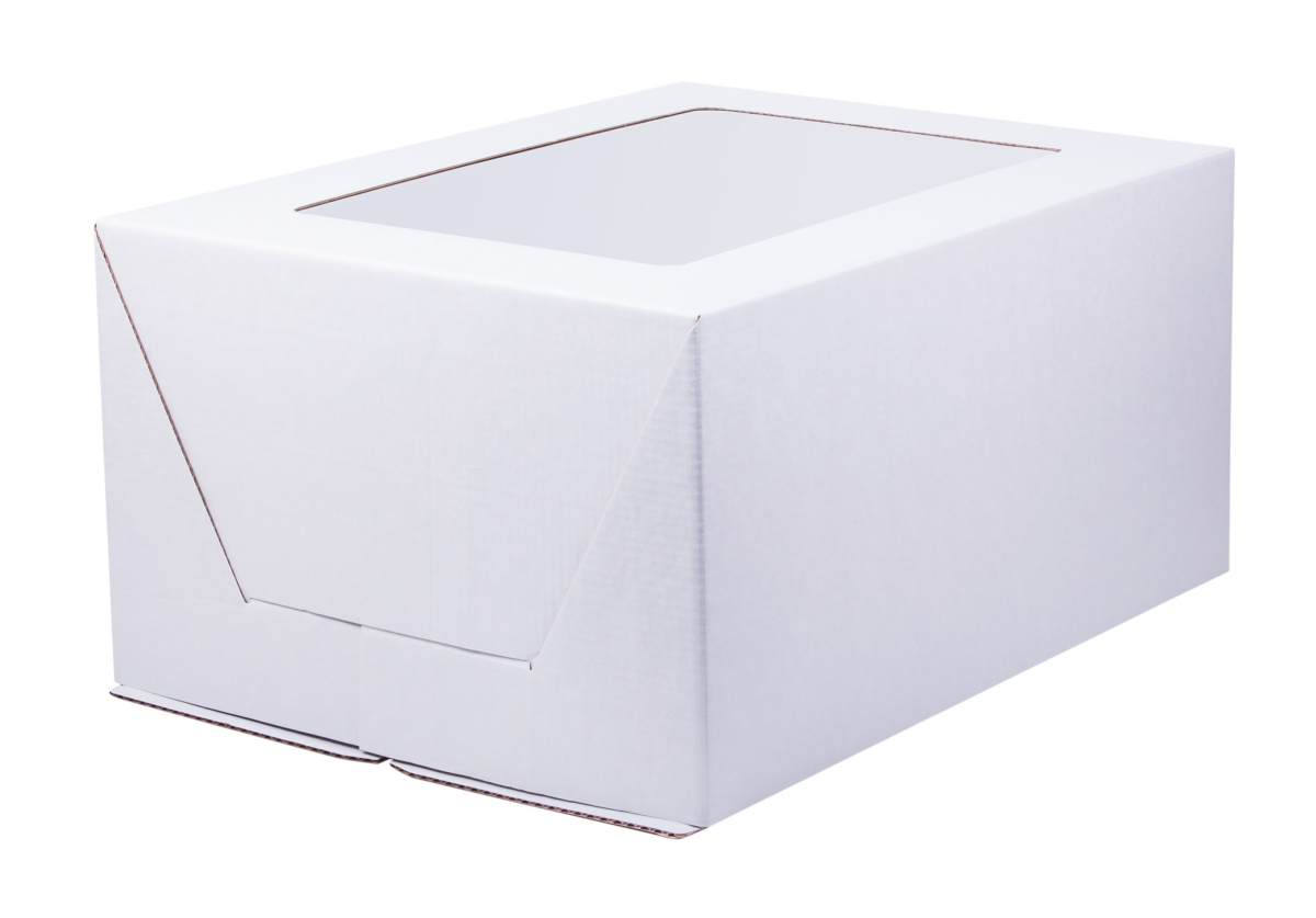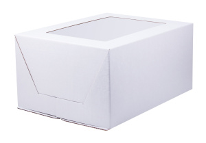 Коробка для торта с окном стандартного вида и сборки-конверт.