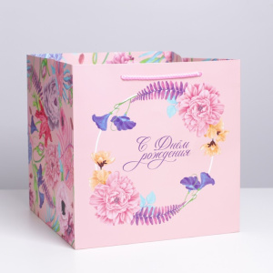 Пакет подарочный "С Днем Рождения" розовый 30х30х30см