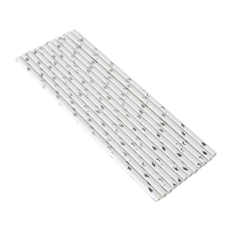 Трубочки "Звезды" белые/серебро 12 штук