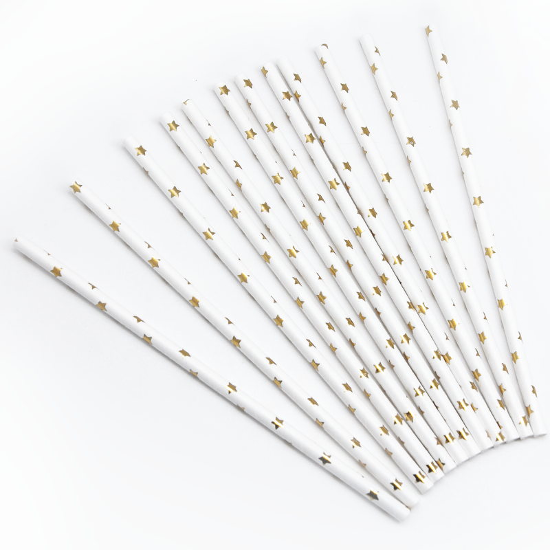 Трубочки "Звезды" белые/золото 12 штук