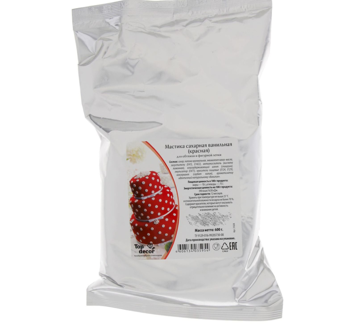 Сахарная паста для обтяжки торта. Можно использовать в качестве мастики для лепки декора (быстро сохнет), как мастику для украшения капкейков и других десертов.