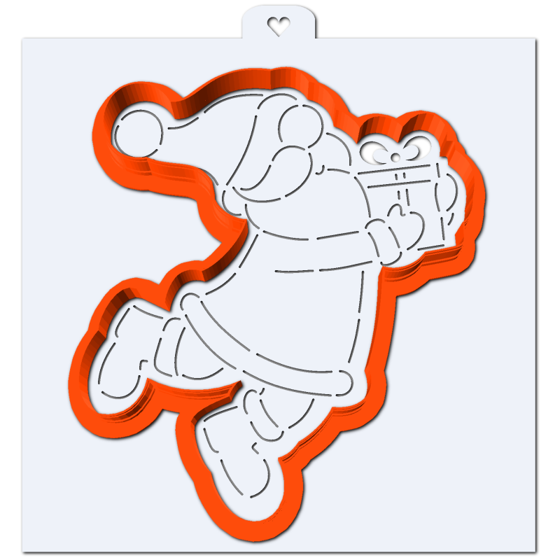 Вырубка с трафаретом в виде деда мороза с подарком, предназначена для вырезания и вырубки пряника, безопасный и прочный материал, легко и просто сделать нужные фигурки, лишних усилий для надавливания прилагать не нужно.