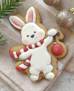 Вырубка с трафаретом в виде зайчика с елочной игрушкой, предназначена для вырезания и вырубки пряника, безопасный и прочный материал, легко и просто сделать нужные фигурки, лишних усилий для надавливания прилагать не нужно.