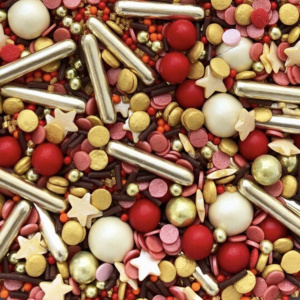 Состав: сахар, крахмал кукурузный, мука пшеничная, мука рисовая, мальтодекстрин, декстроза, гуммиарабик Е414, шеллак Е904, ароматизатор ванильный, пищевые красители