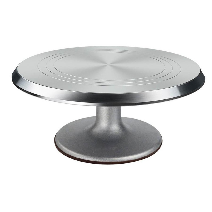 С помощью столика легко нанести крем или ганаш на торт и добиться ровного покрытия.