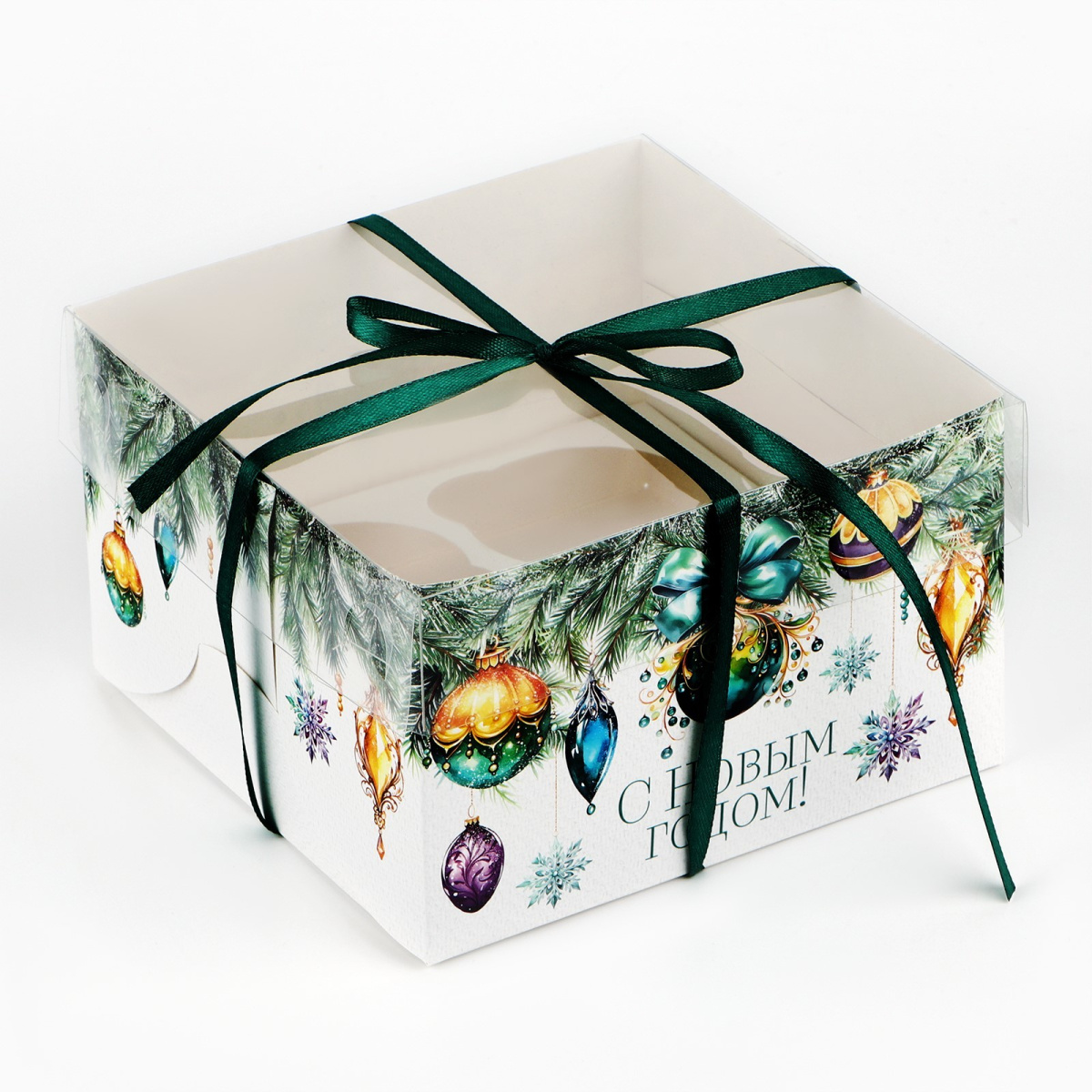 Коробка на 4 капкейка с прозрачной крышкой.