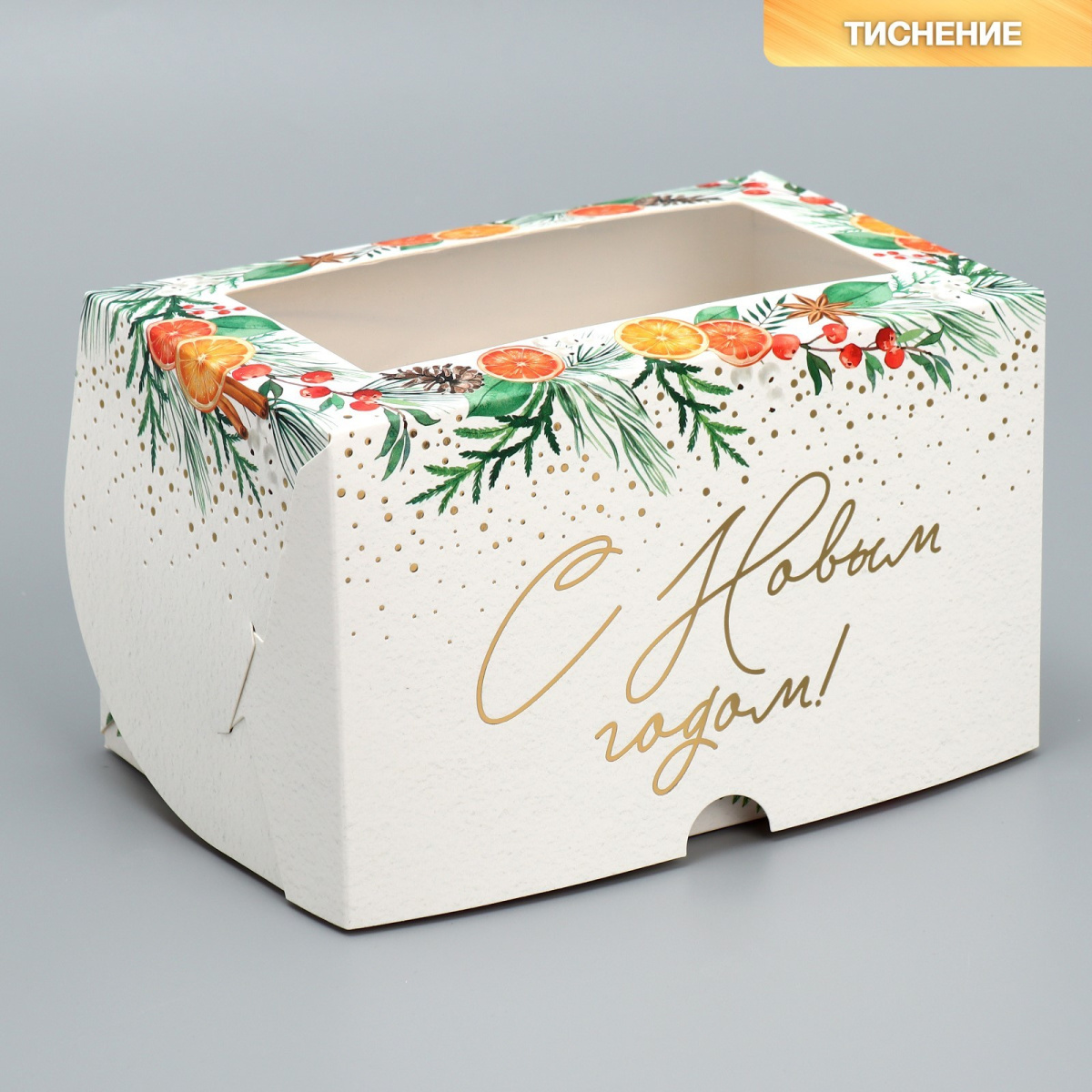 Коробка на 2 капкейка "С Новым Годом" мандарины 10х16х10см