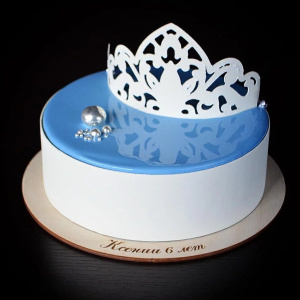 Темперированный шоколад или растопленную шоколадную глазурь распределить на трафарет и установить на торт, после застывания аккуратно снять трафарет с декора.