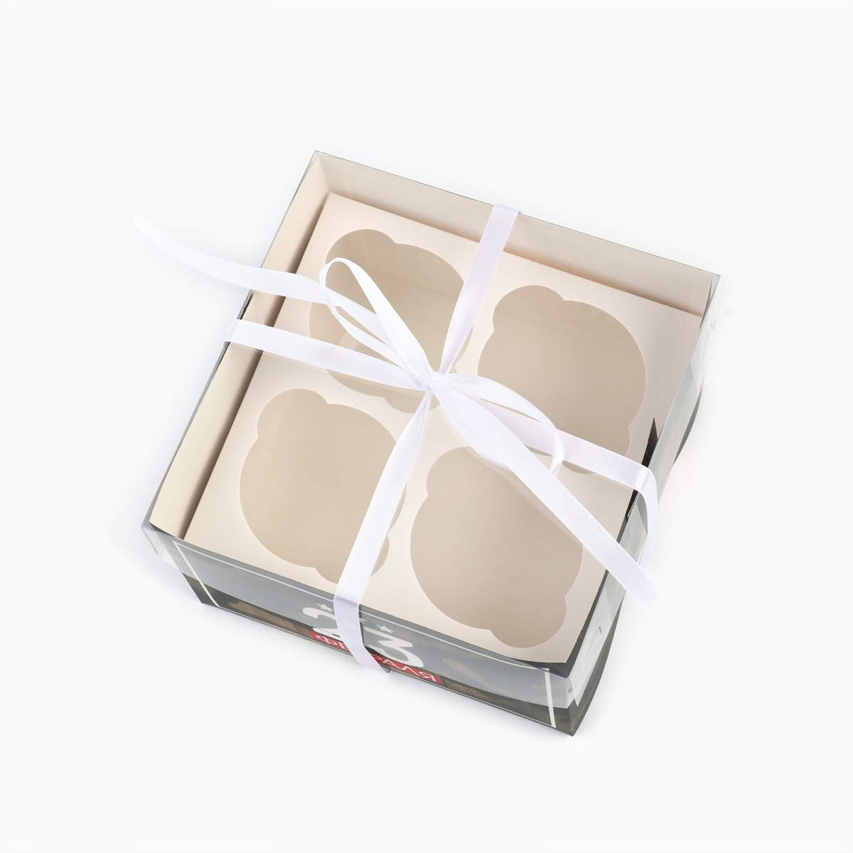 Коробка на 4 капкейка с прозрачной крышкой.