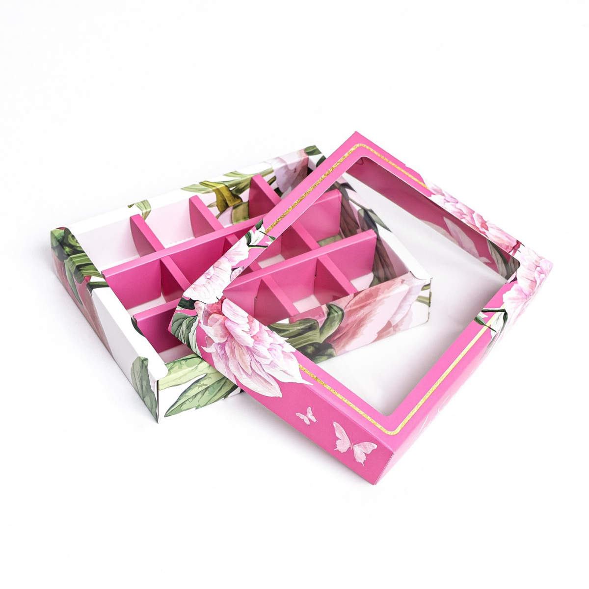 —Коробка на 12 конфет ЛЮБИМОЙ розовые пионы 19х15х3,6см