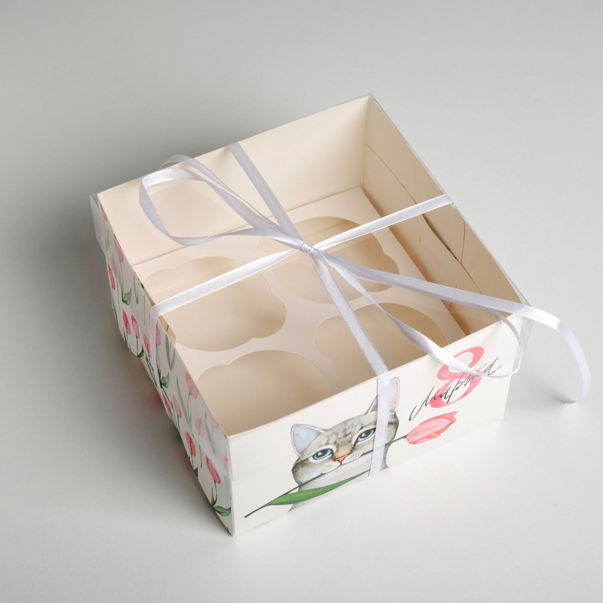 Коробка на 4 капкейка с прозрачной крышкой.