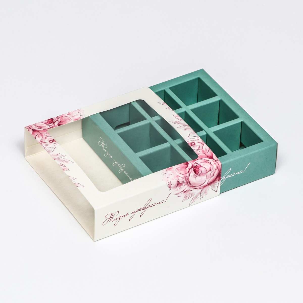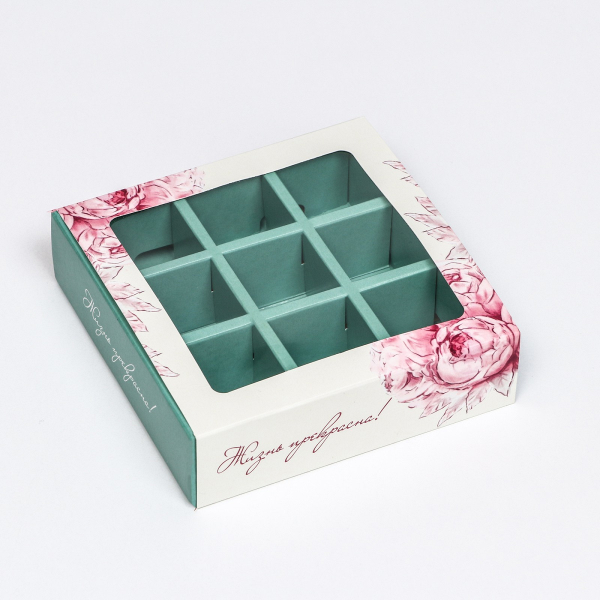 —Коробка на 9 конфет "Жизнь прекрасна Tiffani" 13,7х13,7х3,5см