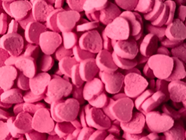 Состав: Сахар, мука рисовая, масло пальмовое, носитель (Е1422), декстроза, загустители (Е415, Е466), эмульгатор (лецитин соевый), глазирователь (шеллак), краситель (Е120), ароматизатор "Ванилин". Возможно наличие следов глютена.