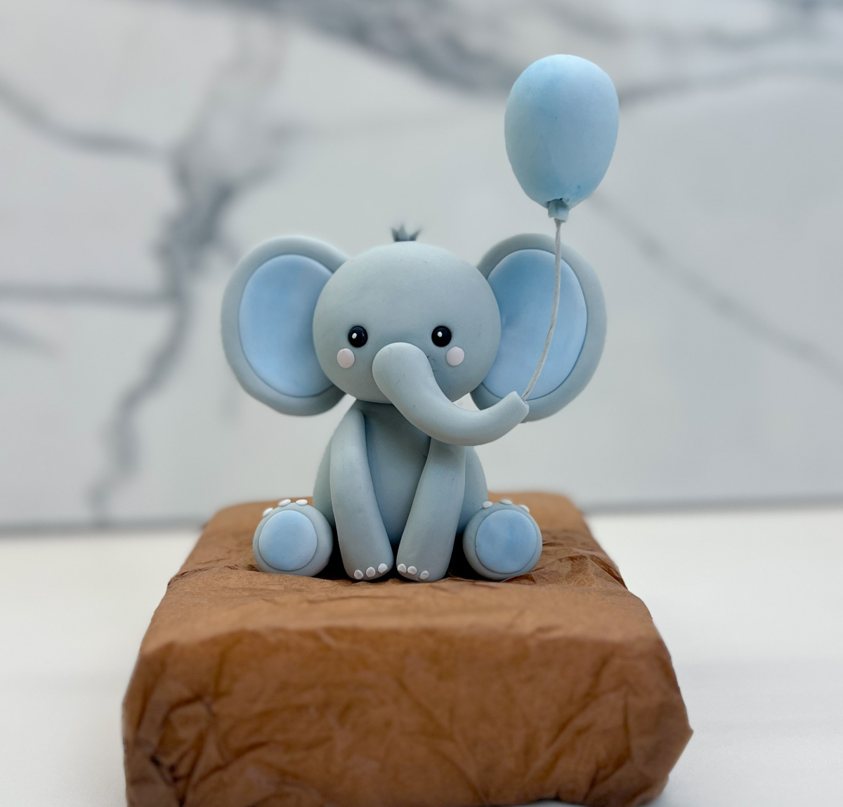 Фигурка из мастики СЛОН С ШАРОМ голубой