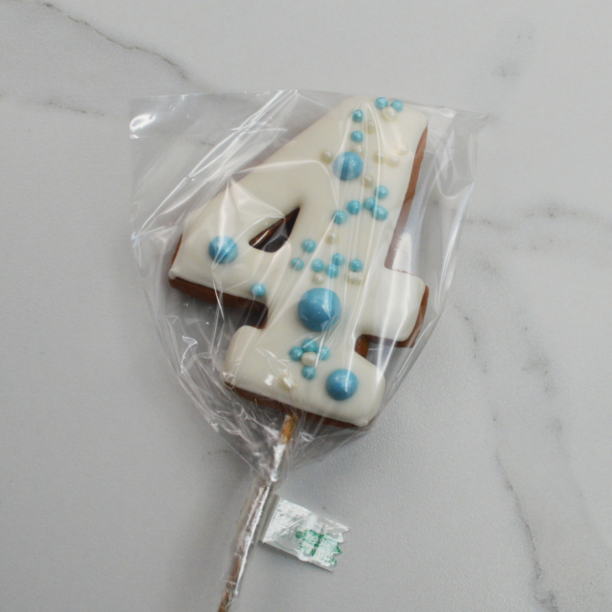 —Пряник ЦИФРА "4" с голубой посыпкой 9см