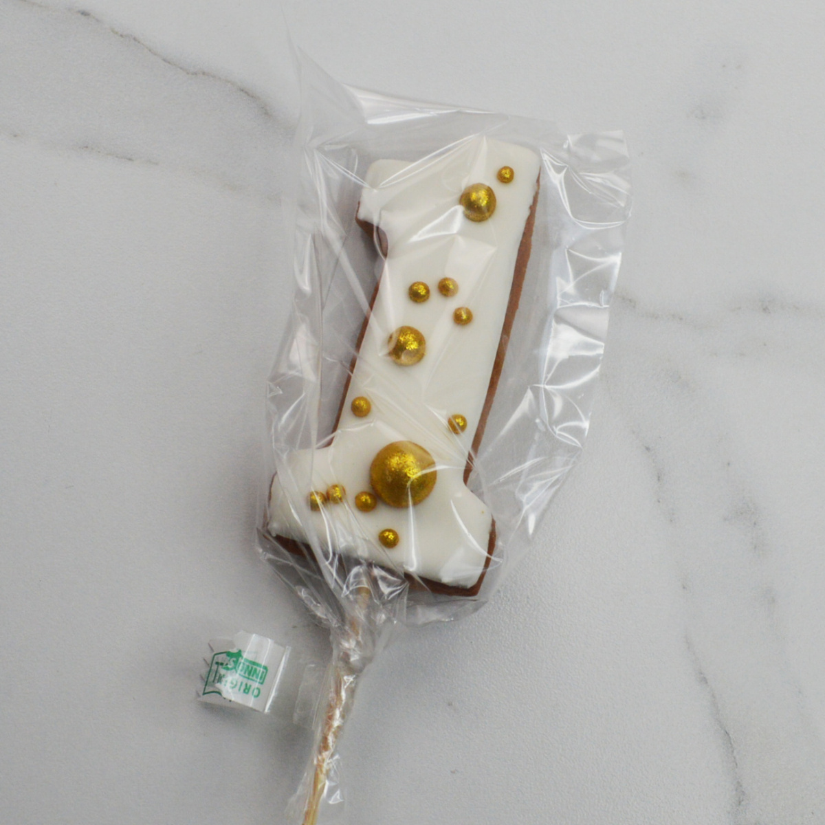 —Пряник ЦИФРА "1" с посыпкой ЗОЛОТО 9см