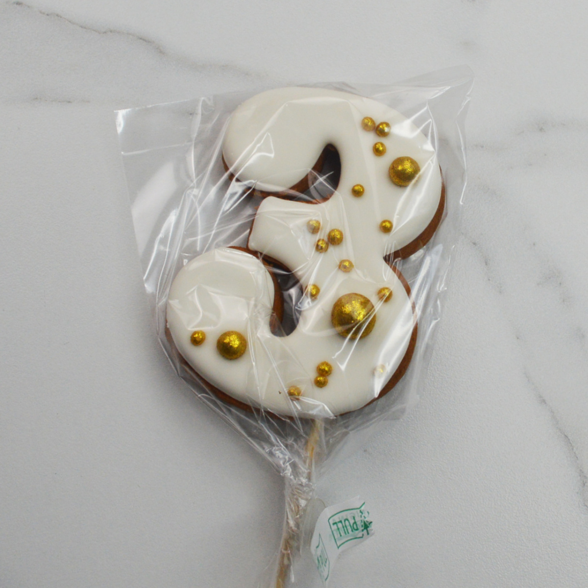 —Пряник ЦИФРА "3" с посыпкой ЗОЛОТО 9см