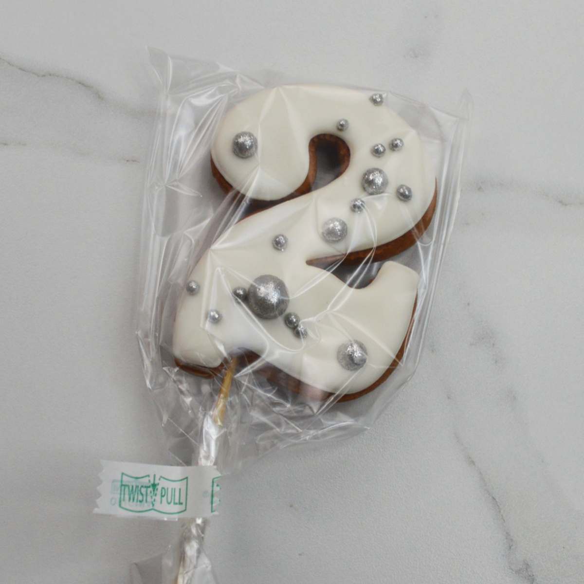 —Пряник ЦИФРА "2" с посыпкой СЕРЕБРО 9см