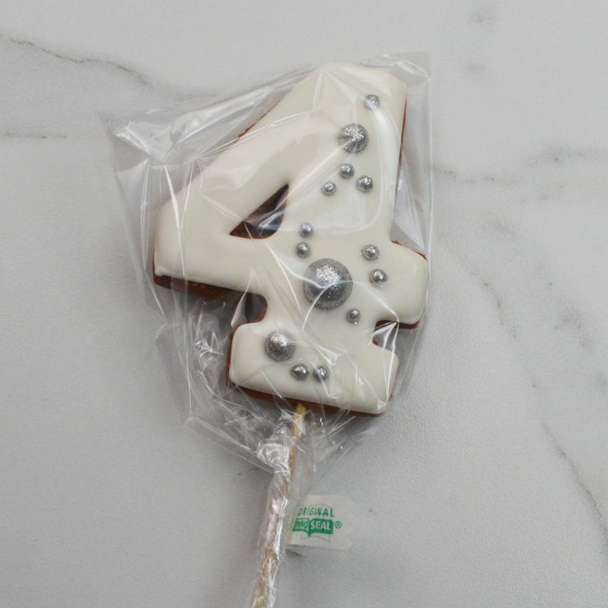 —Пряник ЦИФРА "4" с посыпкой СЕРЕБРО 9см