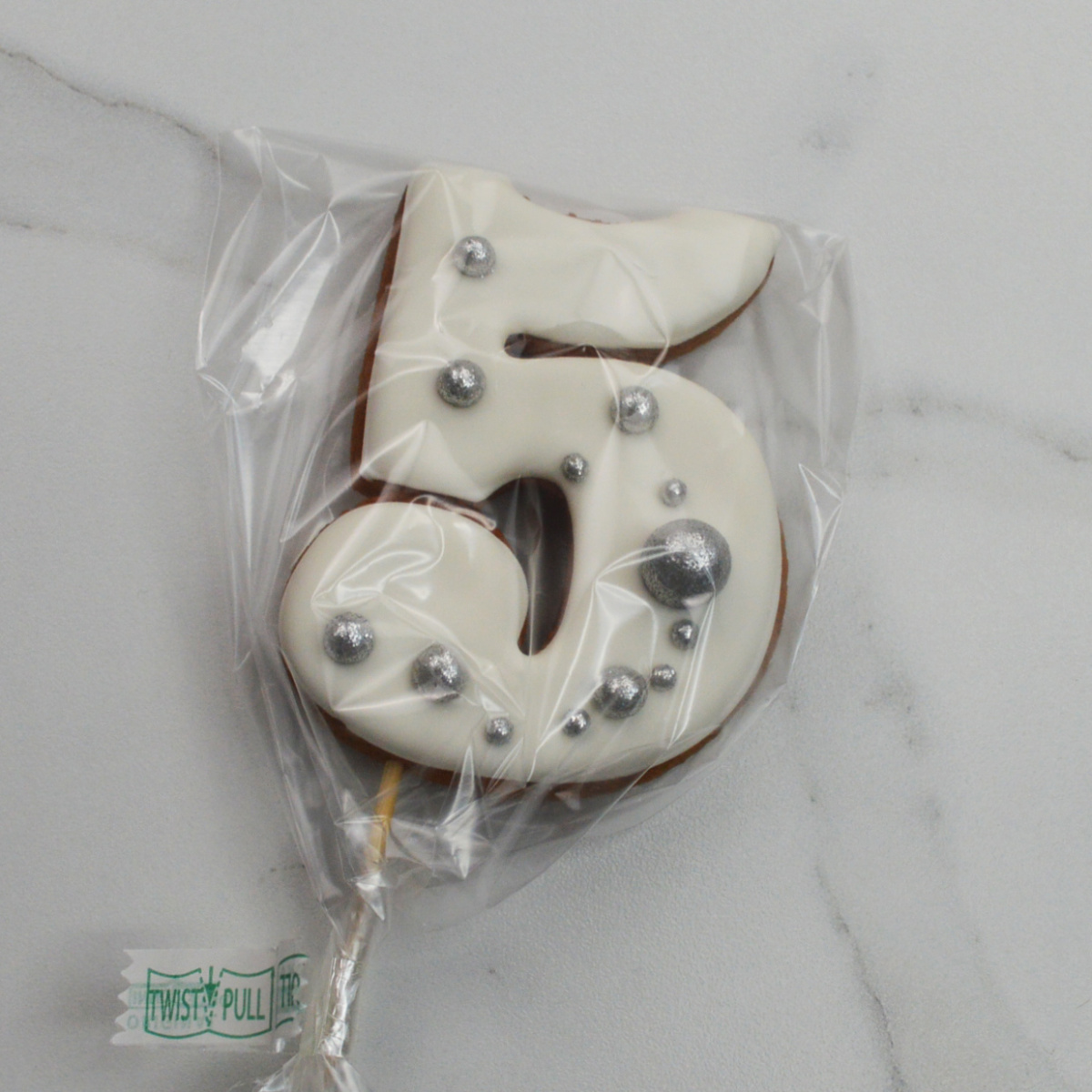—Пряник ЦИФРА "5" с посыпкой СЕРЕБРО 9см
